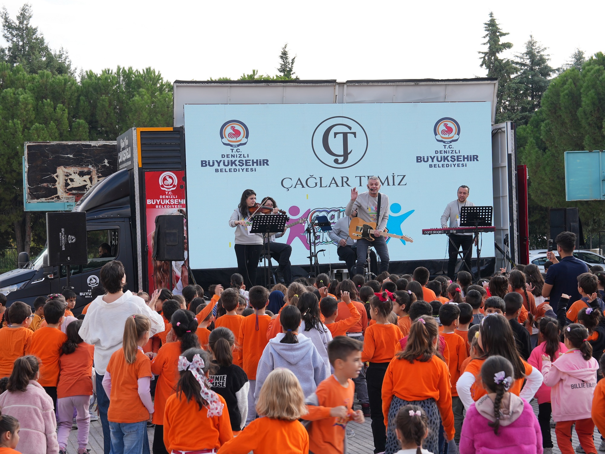 Denizli Büyükşehir Belediyesi, 29 Ekim Cumhuriyet Bayramı kutlamaları kapsamında kent genelinde çocuklara özel etkinlikler düzenliyor. Hafta boyunca farklı ilkokullarda gerçekleştirilen “Çocuk Şarkıları Konserleri” miniklerin büyük ilgisiyle devam ediyor.