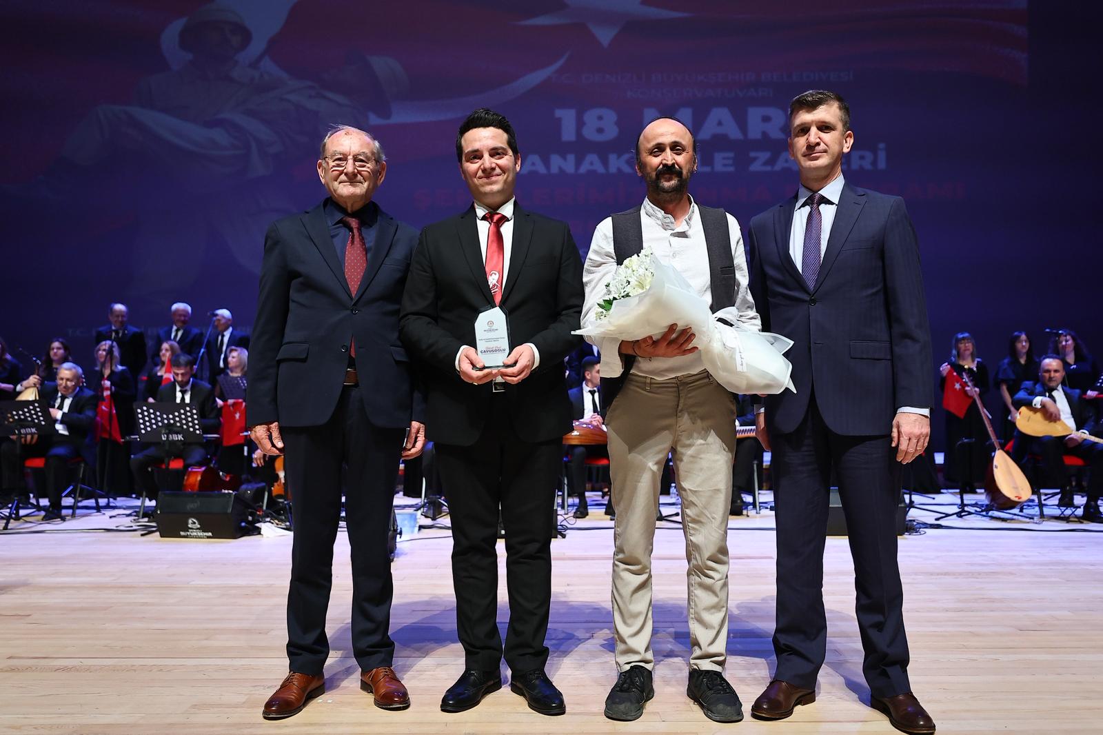 Denizli Büyükşehir Belediyesi Konservatuvarı Türk Sanat Müziği Korosu’nun sahne aldığı gecede, kahramanlık türküleri, ağıtlar ve şiirler dinleyicilere duygu dolu anlar yaşattı. Konservatuvar Türk Müziği Korosu Şefi Ahmet Nuri Çağdaş yönetiminde sahnelenen konserde, Çanakkale ruhunu yansıtan eserler izleyicilerden büyük beğeni aldı. Program kapsamında sahne alan Denizli Büyükşehir Belediyesi Şehir Tiyatrosu oyuncuları ise Çanakkale Zaferi’ni anlatan performanslarıyla geceye ayrı bir anlam kattı. Gecede konuşan Meclis Başkanvekili Ali Marım, programın hazırlanmasında emeği geçen herkese teşekkür ederek, “Bu kadar anlamlı, bu kadar duygulu ve onurlu bir akşamı bizlere yaşatan başta şefimiz Ahmet Hoca olmak üzere tüm hocalarımıza ve koro üyelerimize teşekkür ediyorum. 18 Mart’ın ruhunu, kurtuluşumuzun o eşsiz hatıralarını, Çanakkale’de ve Kurtuluş Savaşı’nda emek veren, can veren tüm kahramanlarımızı ve Ulu Önderimiz Gazi Mustafa Kemal Atatürk’ü saygıyla andık” ifadelerini kullandı.