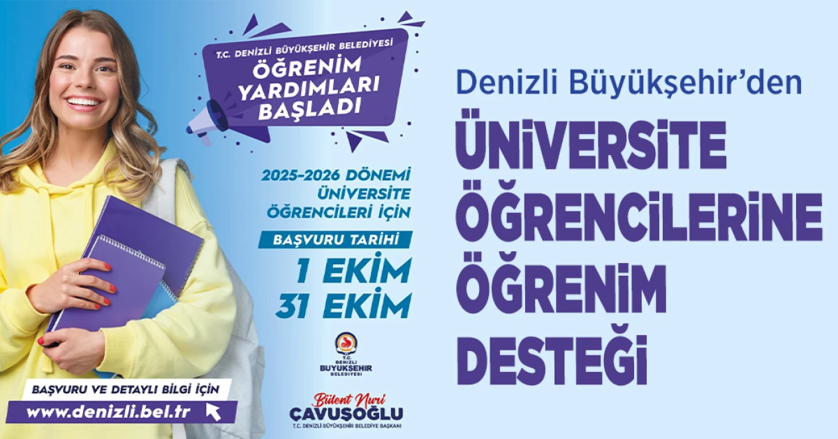 2025-2026 eğitim-öğretim yılında üniversite öğrencilerine verilecek öğrenim yardımı müracaatları başladı. Denizli Büyükşehir Belediyesi, üniversite öğrencilerine yönelik geçtiğimiz yıl ilk kez hayata geçirdiği ayni öğrenim yardımı uygulamasını bu yıl da sürdürüyor. Üniversite öğrenimini il dışında sürdüren Denizlili öğrenciler için başvurular 1-31 Ekim 2025 tarihleri arasında alınacak.