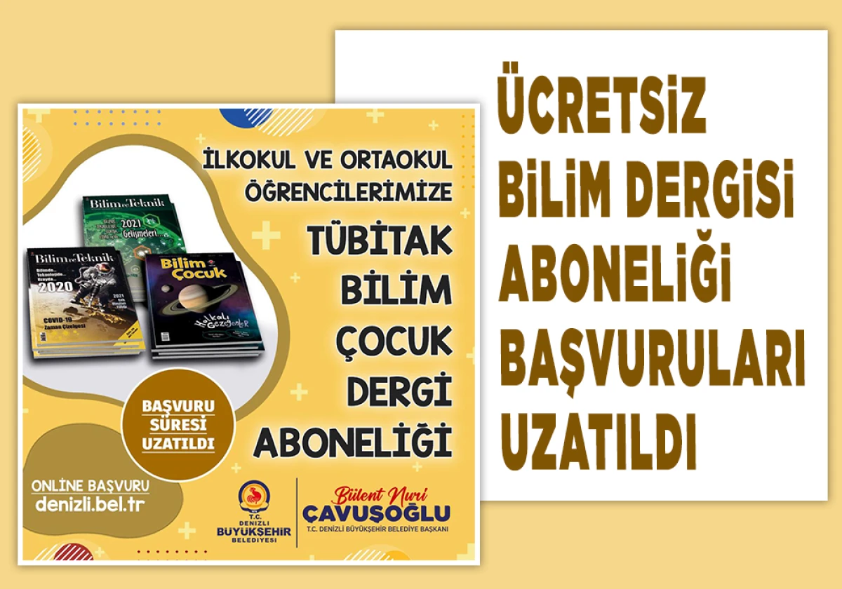 Denizli Büyükşehir Belediyesi, ilkokul ve ortaokul öğrencilerini TÜBİTAK Bilim Çocuk dergisiyle bir yıl boyunca ücretsiz olarak buluşturacak projesine yoğun ilgiden dolayı başvuru süresini 15 Ekim’e uzattı.